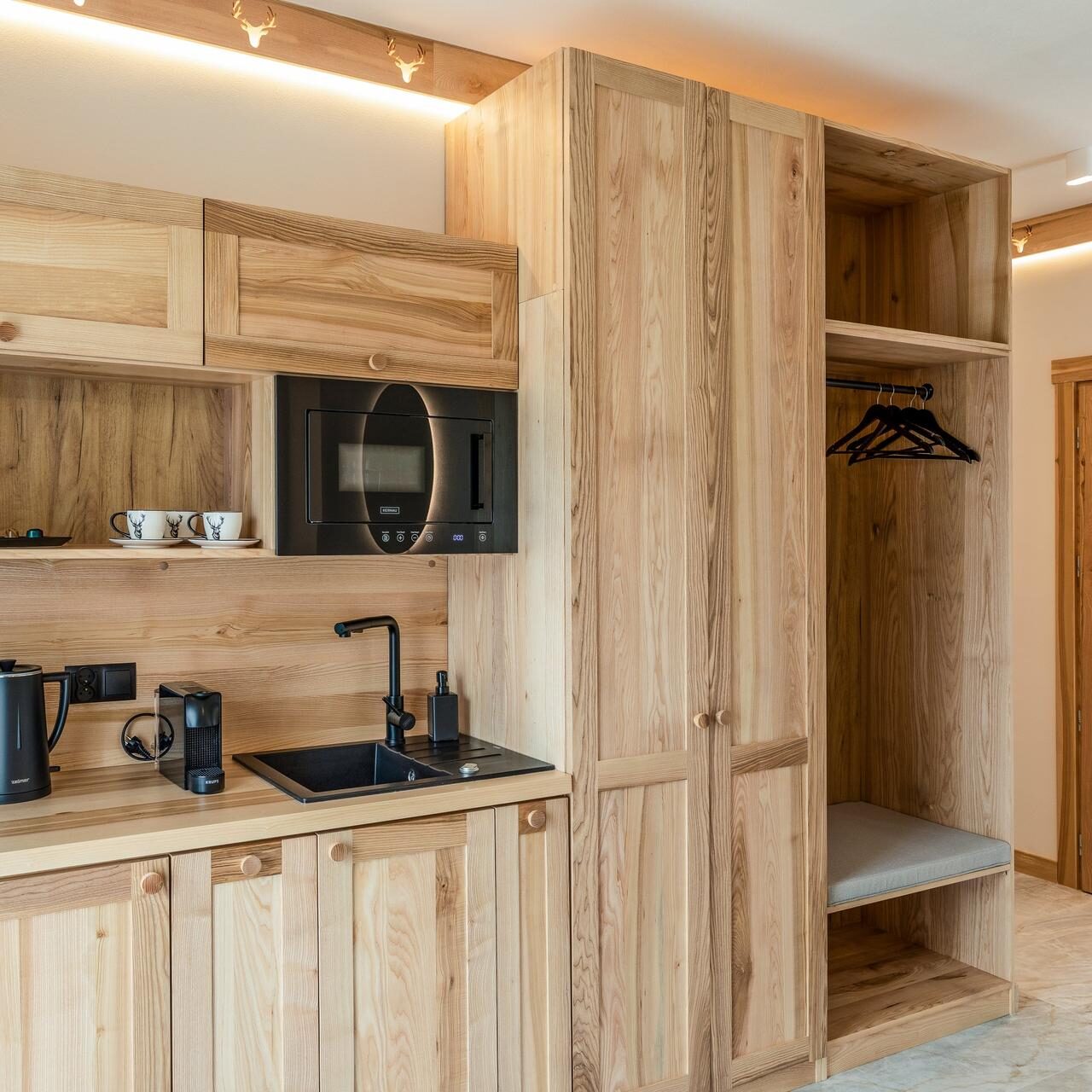 Ciesz się chwilami spokoju, czytając książkę w miękkim fotelu lub podziwiając widok na otaczającą przyrodę przez duże okna. Ten pokój to Twoje idealne miejsce na odnowę – zarówno ciała, jak i ducha.